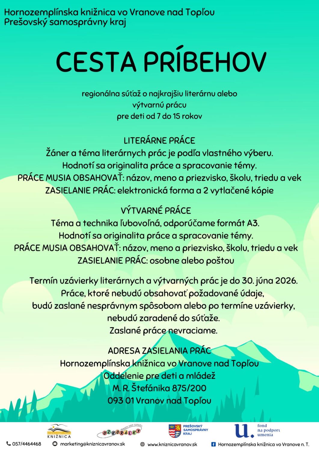 - Je regionálna súťaž o najkrajšiu literárnu a výtvarnú prácu pre mládež do 15 rokov. Hlavným cieľom projektu je vzbudiť záujem o čítanie literárneho textu a jeho tvorenie.
