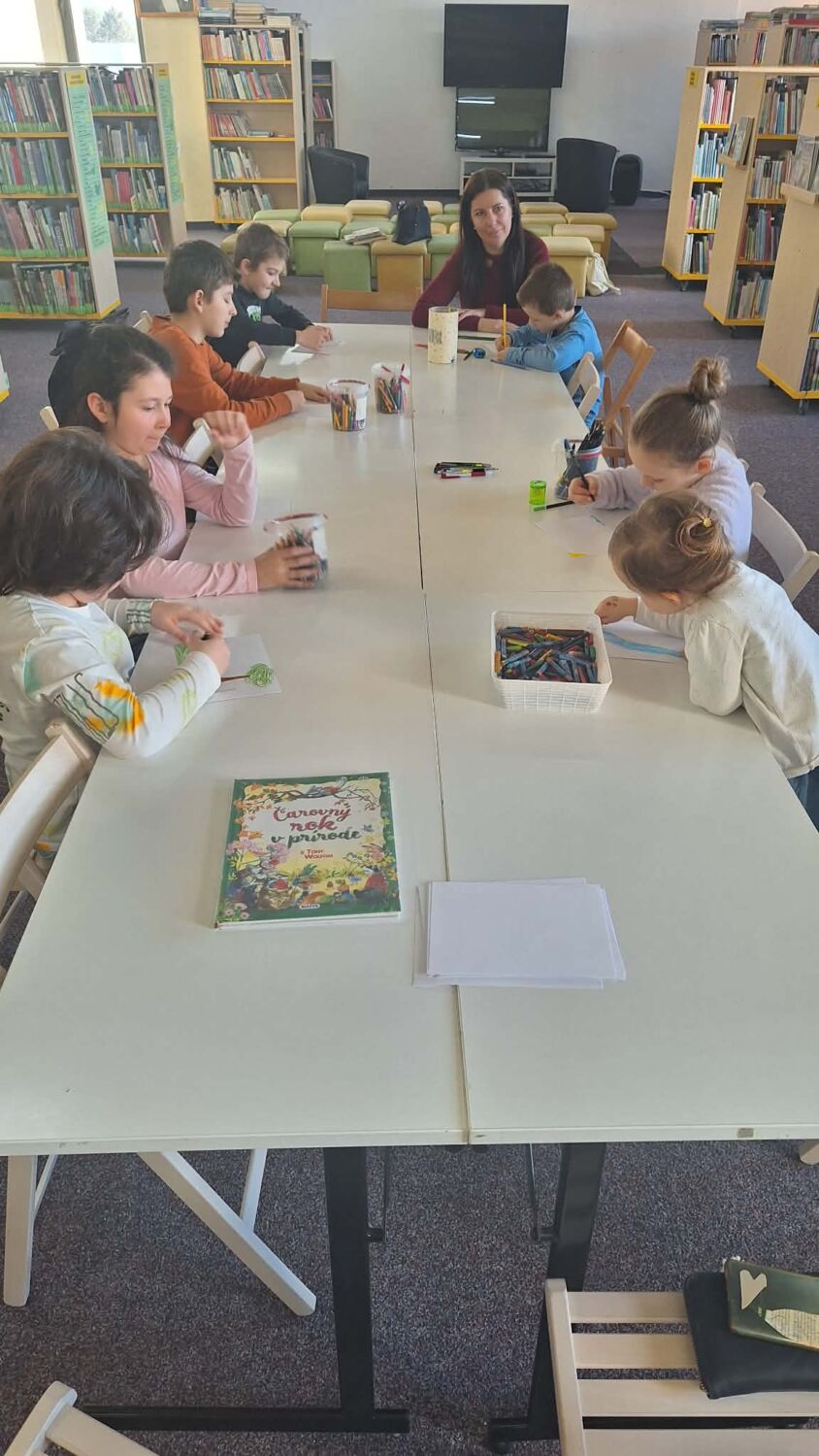 Dnešné (6.3.2026) jarné počasie bolo priam ideálnou predlohou pre vytvorenie tých najkrajších jarným pohľadníc, ktoré vzišli spod rúk šikovných detí. Inšpiráciou boli aj jarné príbehy z knihy Čarovný rok v prírode.