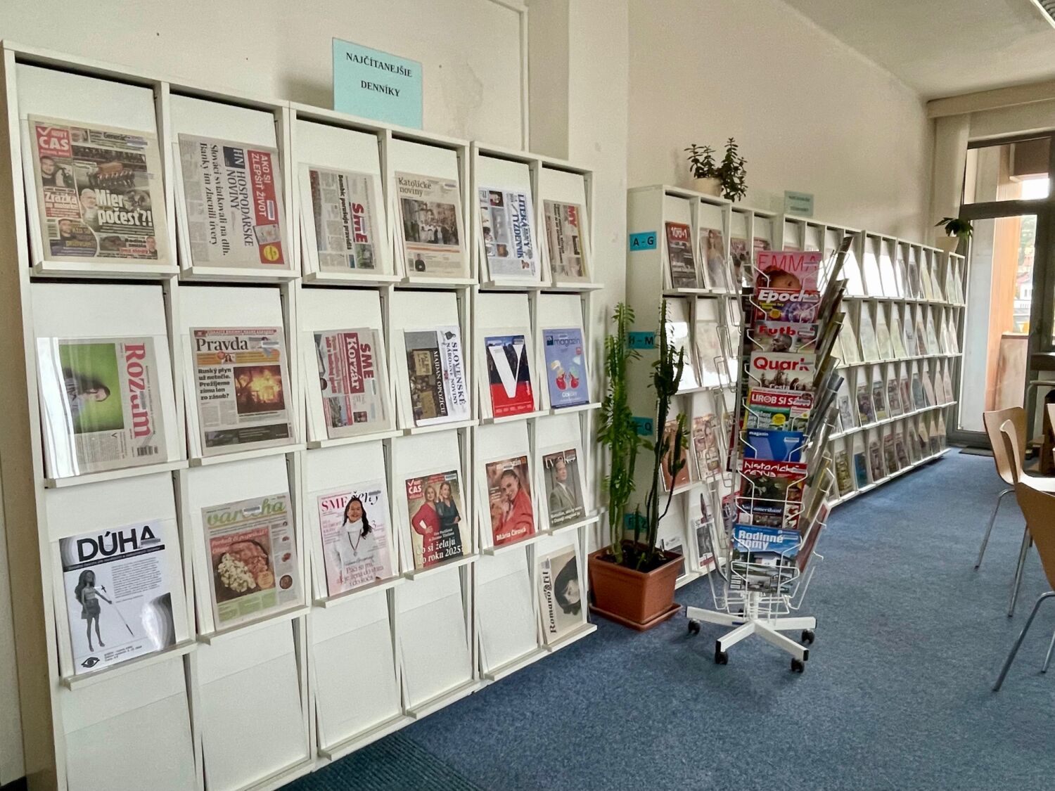 Príďte si v pokoji prečítať aj požičať NOVINY a Časopisy, porozprávať sa s priateľmi a stráviť chvíle plné pohody medzi knihami a časopismi.