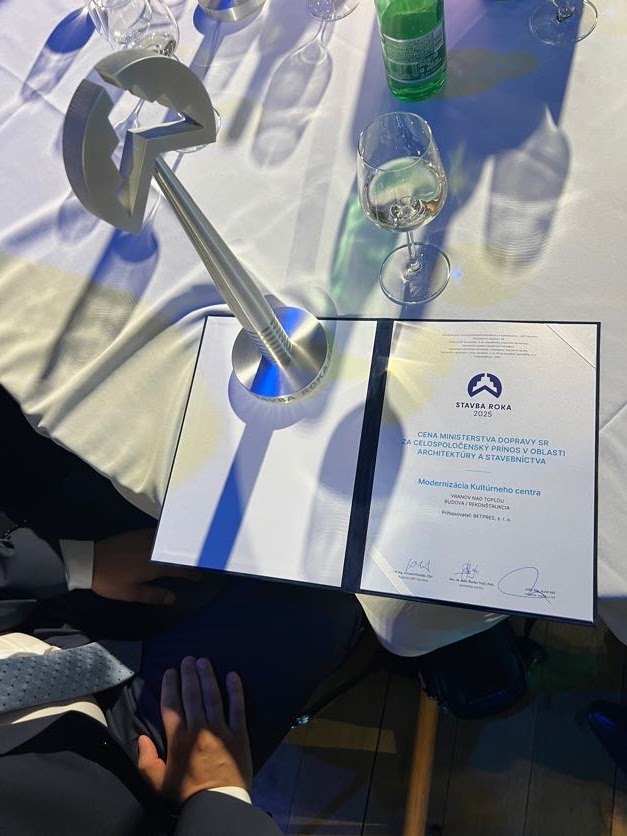 Vďaka vysokej architektonickej kvalite, technickej náročnosti realizácie a výraznému spoločenskému prínosu získala stavba, Modernizácia kultúrneho centra s prevažujúcou činnosťou knižnice vo Vranove nad Topľou, Cenu Ministerstva dopravy SR za celospoločenský prínos v oblasti architektúry a stavebníctva v rámci súťaže Stavba roka 2025.